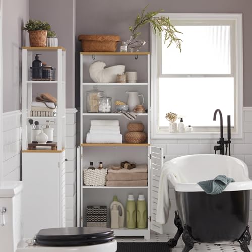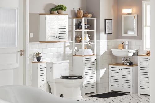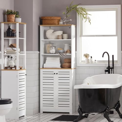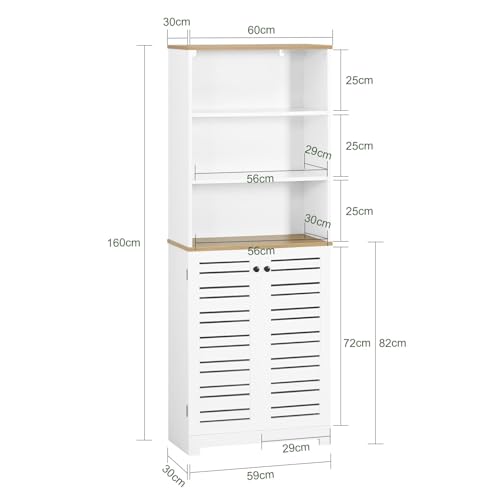 SoBuy - خزانة تخزين طويلة للحمام BZR44-W مع 3 أرفف وبابين مفتوحين من سو باي، خزانة كتب - الطول 60 × العمق 30 × الارتفاع 160 سم، خشب مُصنع، أبيض