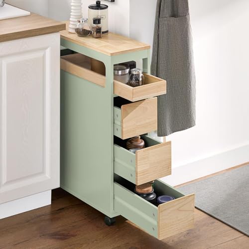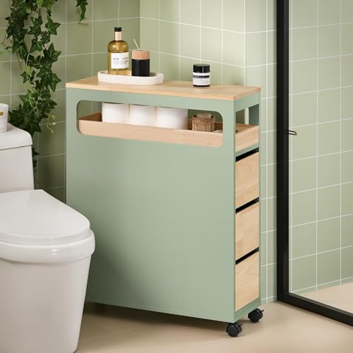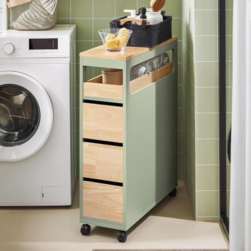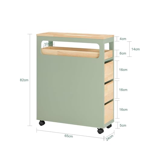 SoBuy - رف تجفيف مع 3 أدراج و1 صينية قابلة للإزالة، رف مطبخ بعجلات للحمام، رف ضيق لأثاث الحمام بلون أخضر بعرض 24 × 82 × 65 سم من سو باي، موديل BZR54-GR