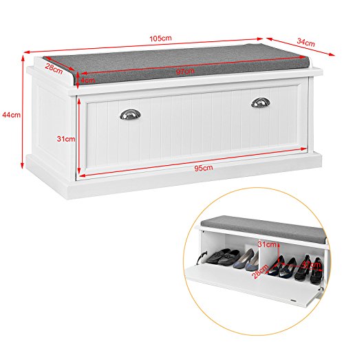 SoBuy - مقعد حاوية مع خزانة ملابس كبيرة ووسادة من سوباي، مقاس 1.05 متر (طول)، موديل FSR41-W