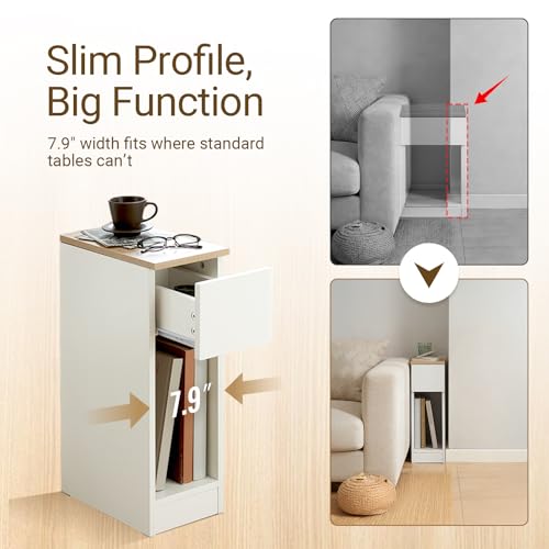 - [مساحة تخزين كبيرة]: تحتوي طاولة السرير النحيفة على درج عملي ومساحة تخزين مفتوحة للكتب أو النظارات أو أجهزة التحكم. مثالية بمثابة طاولة جانبية للكنبة أو طاولة بجانب السرير أو دولاب بدرج صغير، لذلك لديك كل ما تحتاجه بسرعة في متناول اليد.