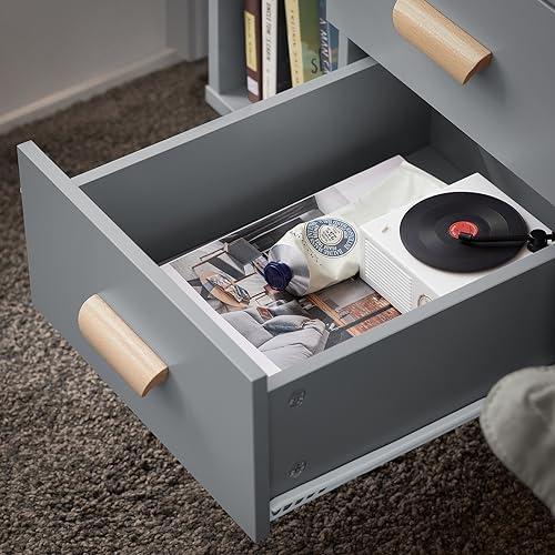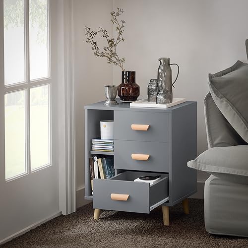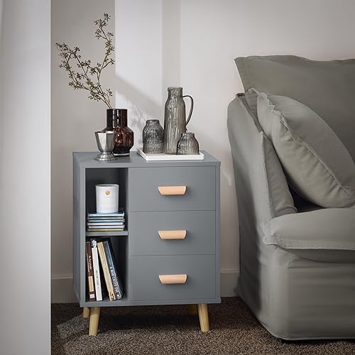 SoBuy - طاولة جانبية مزودة بـ 3 أدراج ورفين لغرفة المعيشة وغرفة الطعام موديل FBT95-HG من سو باي، مقاس 48 × 40 × 60 سم، لون رمادي