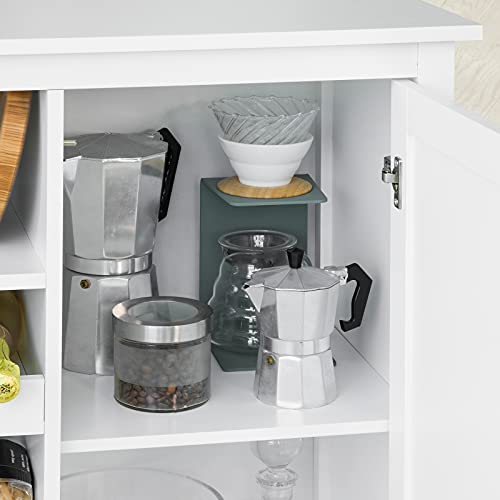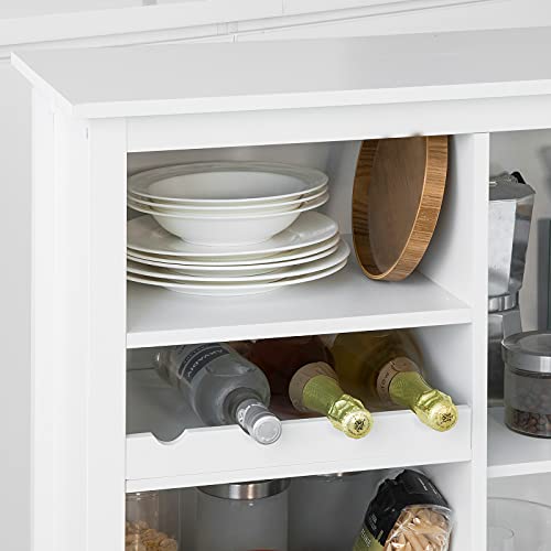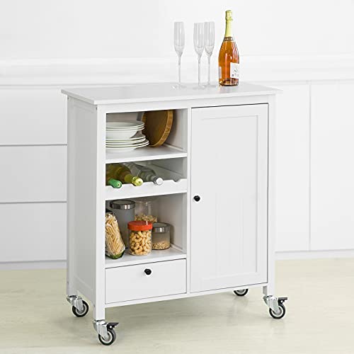 SoBuy - دولاب تخزين جانبي بعجلات، عربة متعددة الوظائف للمطبخ للتقديم مع حامل زجاجات من سو باي، أبيض، 76 × 36 × 93 سم، FKW104-W