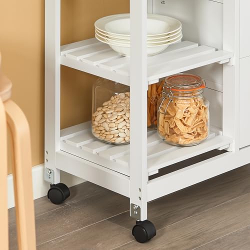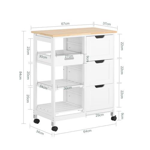 SoBuy - عربة تقديم الطعام للمطبخ مع 3 أدراج وصينية قابلة للإزالة من سوباي، عربة تخزين للمطبخ، لون أبيض، موديل FKW79-W