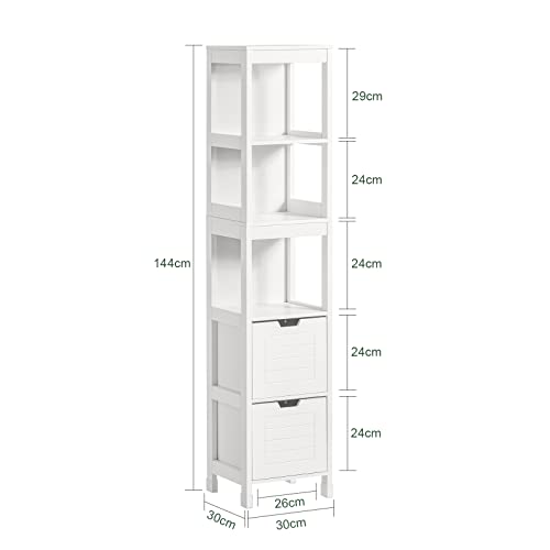 SoBuy - خزانة حمام مرتفعة مع 3 أرفف ودرجين مقاس 30 × 30 × 144 سم من سوباي، موديل FRG126-W، خشب، أبيض
