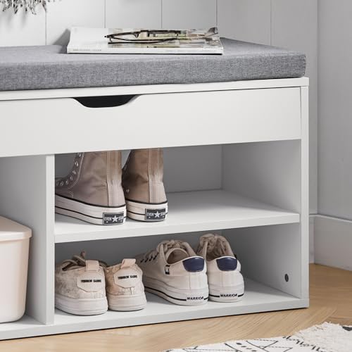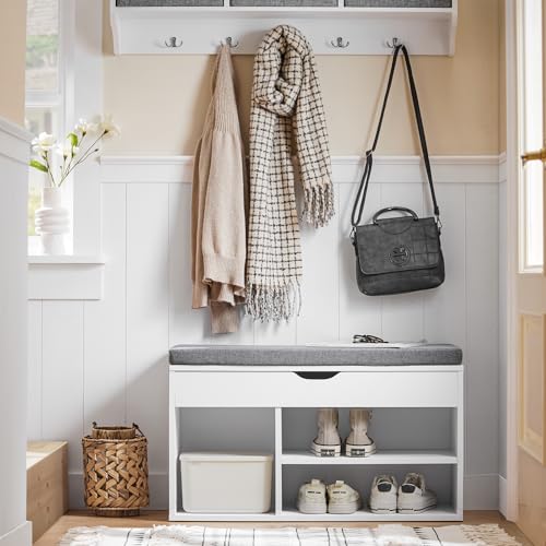 SoBuy - دولاب أحذية من سو باي، موديل FSR45-HG، دولاب أحذية مع مقعد علوي قابل للرفع ووسادة رمادية