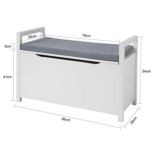 SoBuy - مقعد تخزين لمنطقة الدخول FSR76-W مع وسادة ومساند للذراعين عرض 86 × عمق 38 × ارتفاع 41 سم من سو باي