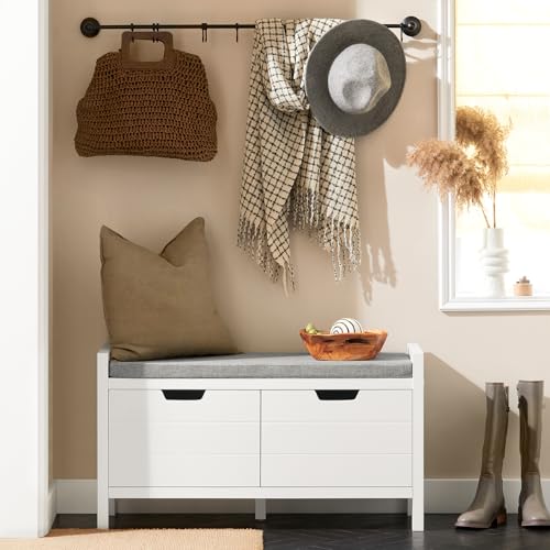 SoBuy - رف أحذية أبيض، جزامة مع مقعد بوسادة للممر من سو باي هاوتيان، FSR63-W