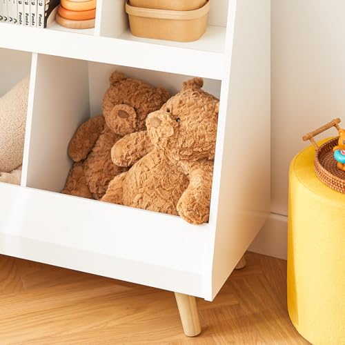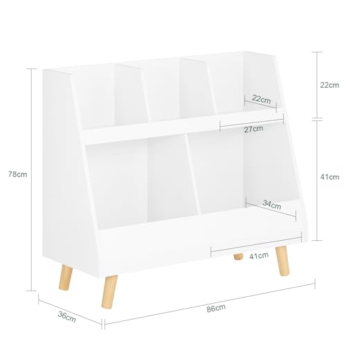 SoBuy - منظم الكتب للأطفال من سو باي مكون من 5 أقسام ومزود بأرجل خشبية صلبة موديل KMB19-W - ابيض، خشب مُصنع، مطلي بالورنيش