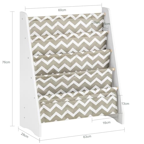 SoBuy - خزانة كتب معلقة للأطفال موديل KMB50-HG بتصميم من 4 أرفف بإطار للجرائد والكتب من سوباي، العرض تقريبًا 63× 76× 28 سم، مفروك بالزيت، أبيض/رمادي، ورق