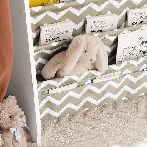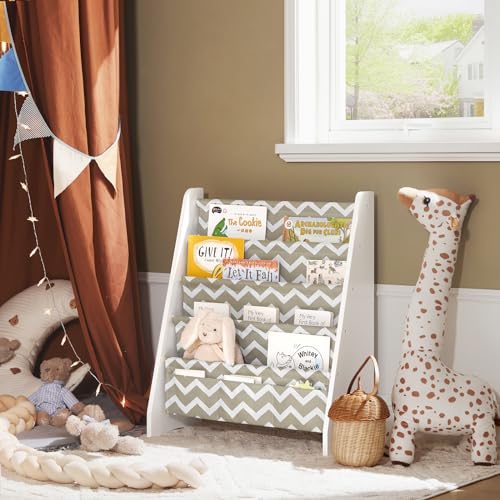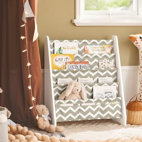 - حجم مثالي للأطفال الصغار، مع أربعة مساحات تخزين قماشية معلقة لتخزين الكتب بدقة من جميع الأشكال والأحجام.