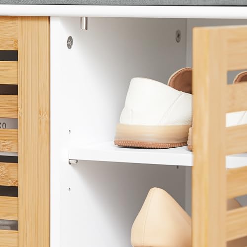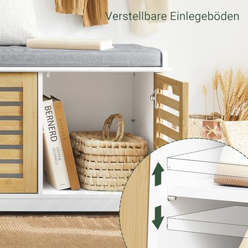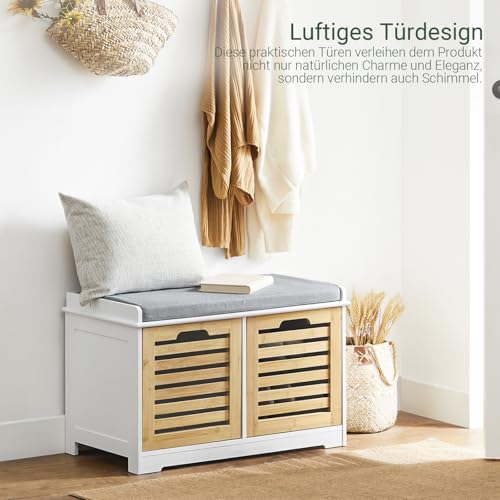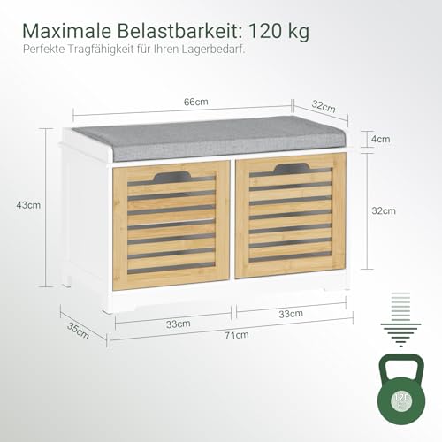 SoBuy - مقعد أحذية FSR23-II-W مع مساحة تخزين، مقعد للمدخل بأدراج تخزين للأحذية، رف أحذية مع مقعد من سو باي، لون أبيض طبيعي مقاس 71 × 43 × 35 سم