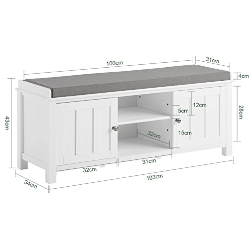 SoBuy - سو باي رف احذية مع بابين مغلقين ورفين، تخزين ومقعد مع وسادة علوية، خزائن، FSR35-W,ES، خشب مُصنع