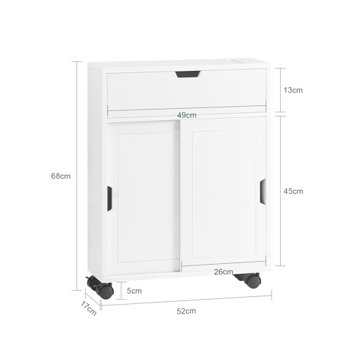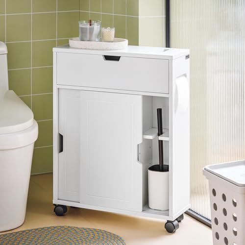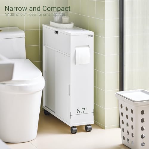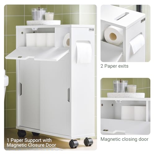 SoBuy - رف تخزين لخزانة الحمام بعجلات من سو باي (مخزون الإمارات العربية المتحدة)، خزانة تخزين ورق المرحاض، موديل BZR31-W