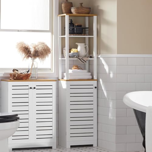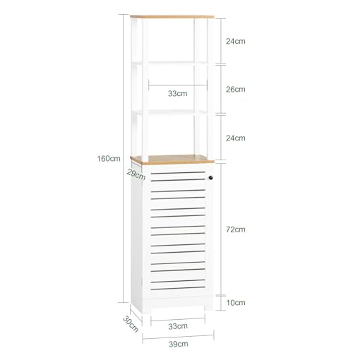SoBuy - خزانة طويلة للحمام مع 3 أرفف وباب واحد، موديل BZR43-W (مخزون الإمارات العربية المتحدة) من سو باي