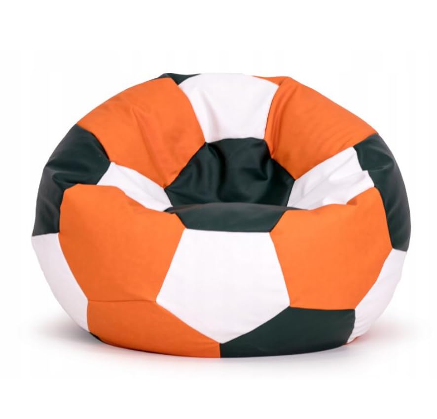 - التصميم: مقعد بين باج بنمط كرة القدم يتميز بلون برتقالي وأبيض وأسود مذهل، بتصميم كلاسيكي بنمط كرة القدم.