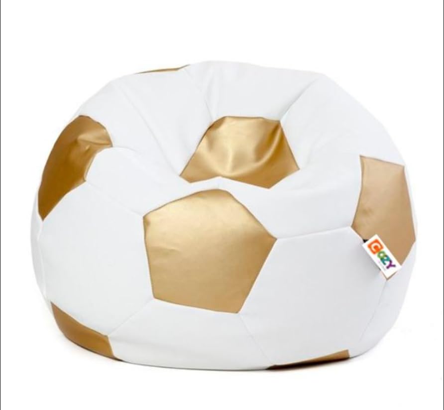 Generic - كرسي بين باج لكرة القدم، أبيض وذهبي، مقعد ألعاب بطابع رياضي، بين باج، 90 × 70 سم، أبيض/ذهبي