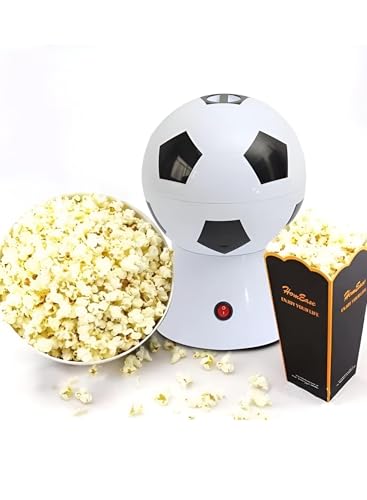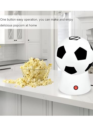 Generic - ماكينة صنع الفشار بالهواء الساخن بقدرة 1200 واط بتصميم كرة القدم الاصلي باللون الابيض والاسود، تشغيل بزر واحد، حجم صغير 17 سم × 27 سم للوجبات الخفيفة السريعة والصحية في المنزل او الحفلات