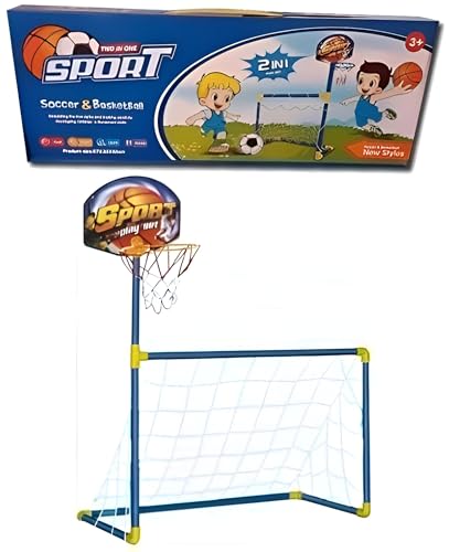 Generic - مجموعة كرة السلة لكرة القدم - مرمى رياضي مزدوج بتصميم قابل للسحب للاطفال، يتضمن مرمى كرة قدم وحلقة كرة سلة، مثالية للعب في الاماكن المغلقة والمفتوحة، تشجع على نمط الحياة النشط