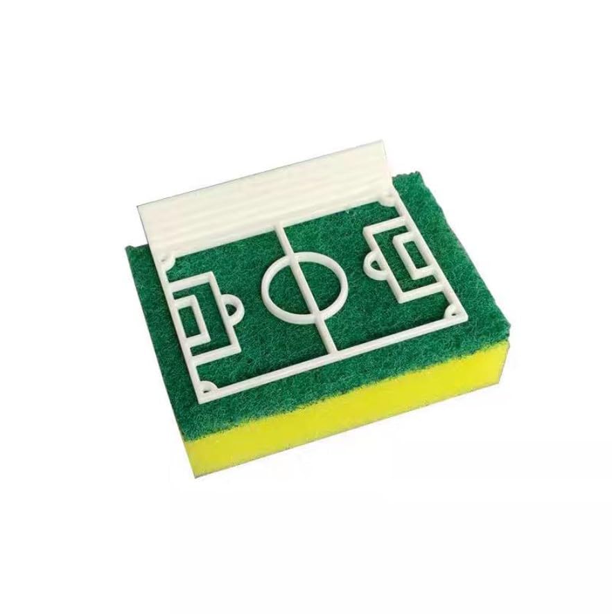 Generic - اسفنجة مطبخ بتصميم ملعب كرة القدم مع فرشاة تنظيف مزدوجة الجوانب، اخضر واصفر