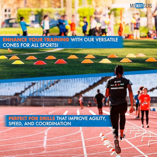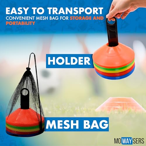 MOWAYSERS - مخاريط كرة القدم للتدريب من مووايسرز | عبوة من 50 قطعة من مخاريط التدريب مع شنطة شبكية | مخاريط للتدريب الرياضي | مخاريط برتقالية للرياضة | مخروط كرة القدم | مخاريط تدريب كرة القدم 2025