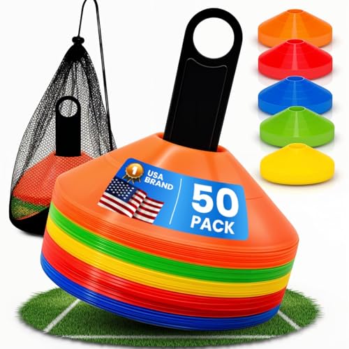 - مقاس كبير - تتضمن هذه المجموعة 50 مخروط تدريب، مما يوفر معدات وافرة للتدريب الجماعي والتدريب الشخصي وإعداد تدريبات معقدة لتحدي الرياضيين من جميع المستويات. خيار جيد كمخاريط رياضية للتدريبات ومخاريط لممارسة كرة القدم ومخاريط التدريب على التدريبات ومخاريط تدريب كرة القدم.
