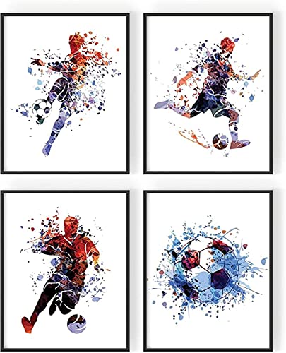 Generic - مطبوعات فنية جدارية بألوان مائية لكرة القدم - صورة ظلية للجسيمات - مجموعة من 4 قطع (20 × 25 سم) صور بوستر - كهف الرجل - طباعة صور مطلية لديكور غرفة النوم 20 × 25 سم بدون إطار