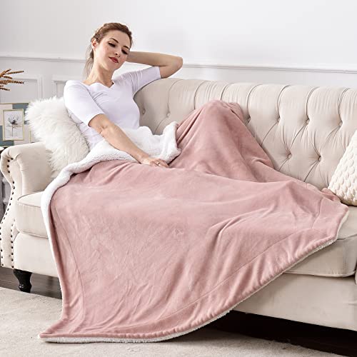 SOCHOW - بطانية صوف شيربا، بطانية قطيفة فاخرة فائقة النعومة مزدوجة الجوانب، مقاس مزدوج، لون وردي مغبر من سوكو