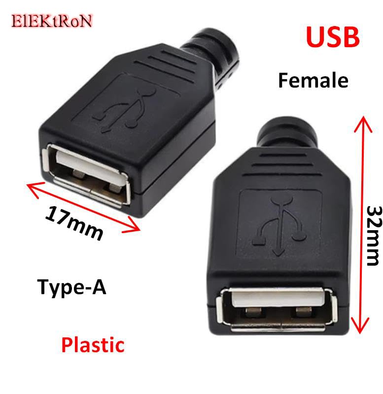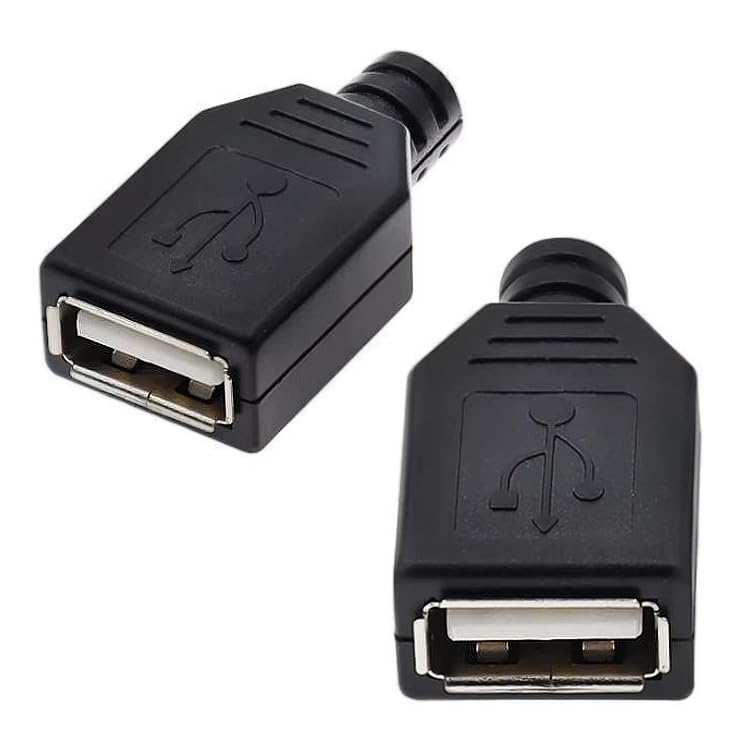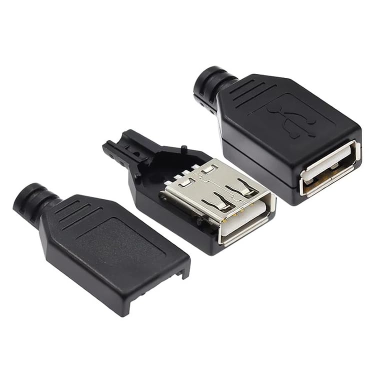 - 2 قطعة موصل مقبس منفذ أنثى إصلاح USB 2.0 نوع A قابس لحام للكابل مع غطاء بلاستيكي أسود محول بديل
