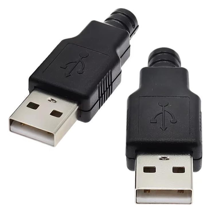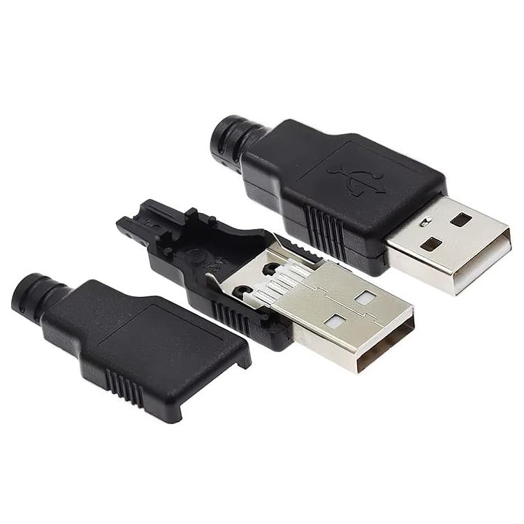 - 2 قطعة موصل مقبس منفذ ذكر إصلاح USB 2.0 نوع A قابس لحام للكابل مع غطاء بلاستيكي أسود محول بديل