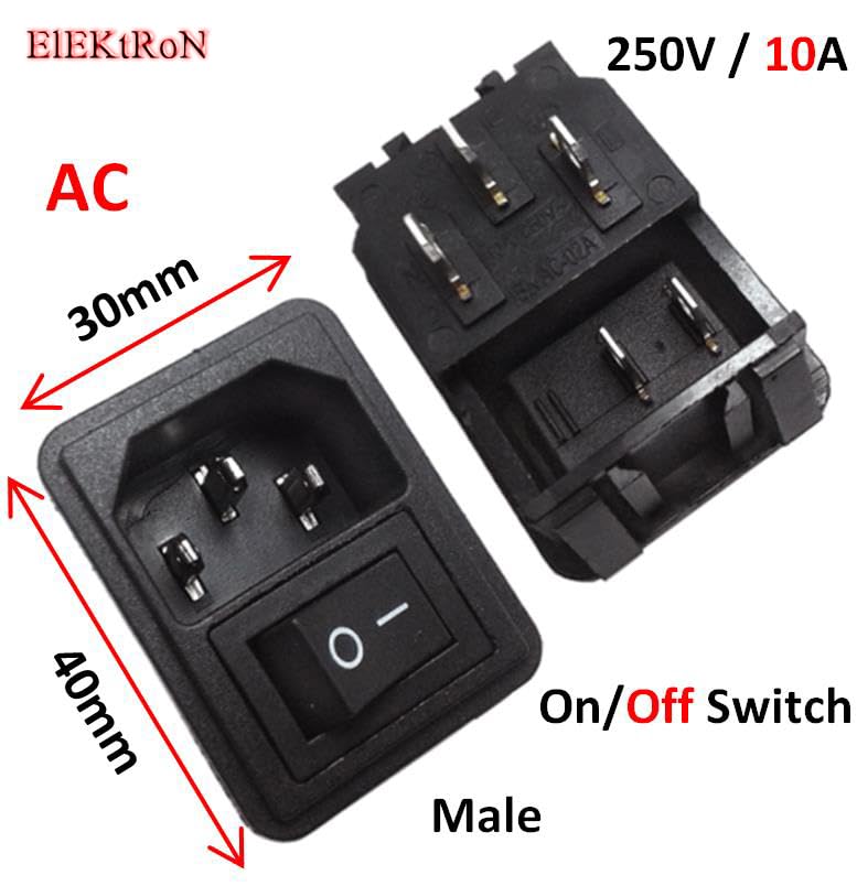 Generic - مقبس طاقة ذكر بمنفذ مقبس طاقة مع مفتاح تشغيل/ايقاف ومقابس طاقة تيار متردد 10 امبير 250 فولت PCB لامداد طاقة الكمبيوتر ومحول بديل لمقابس الشاشات