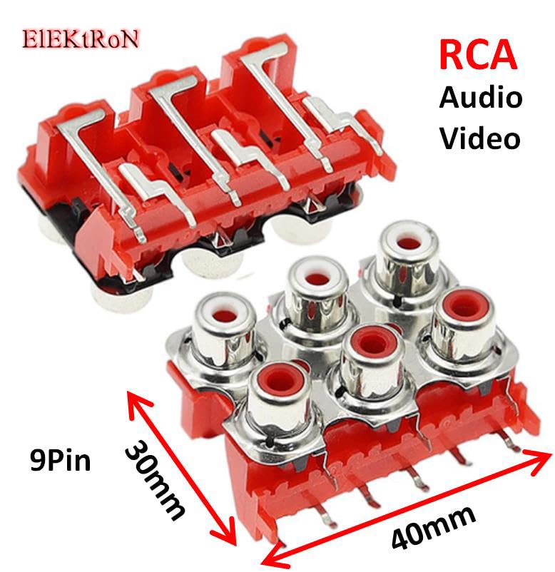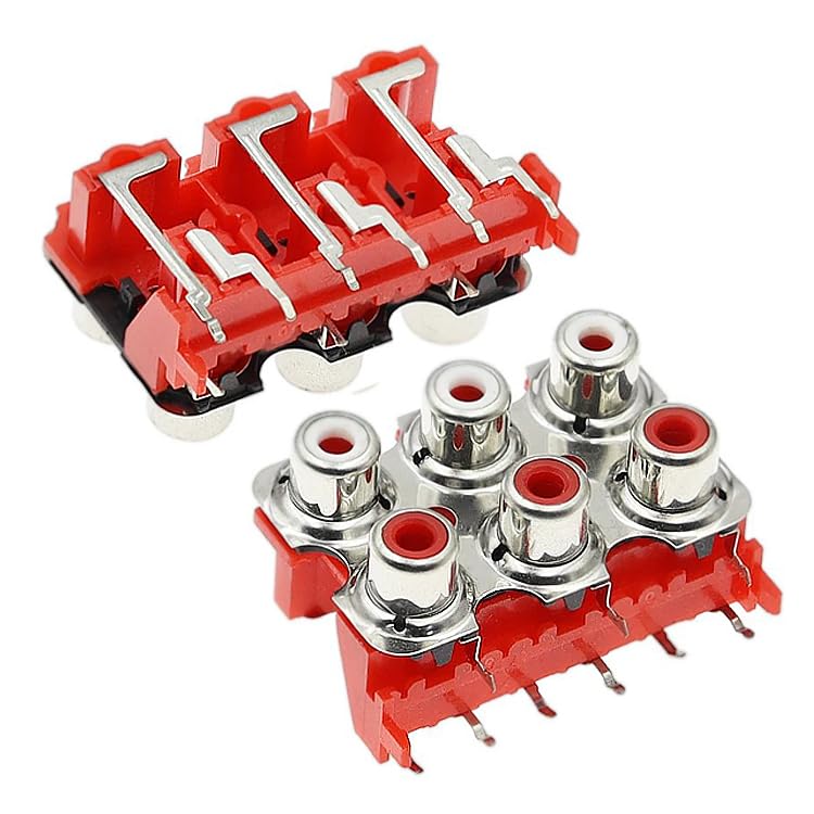 Generic - مقبس ار سي ايه - موصل منفذ انثى لاصلاح لوحة الدوائر المطبوعة يثبت على صوت ستيريو وفيديو مع شريط مأخذ في 6 دبابيس AV2-8.4-13 احمر هيكل بزاوية قائمة