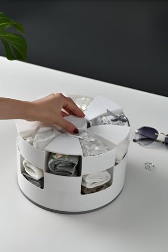 Generic - منظم للجوارب والملابس الداخلية بالإضافة إلى حل تخزين للربطات والإكسسوارات - سلة متعددة الطبقات دوارة | خزانة دائرية الشكل | صندوق عالمي | أبيض