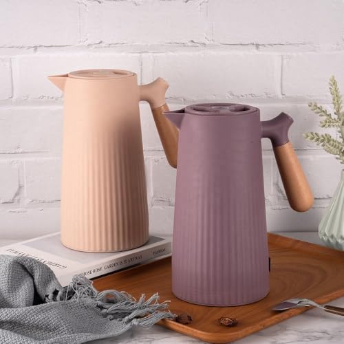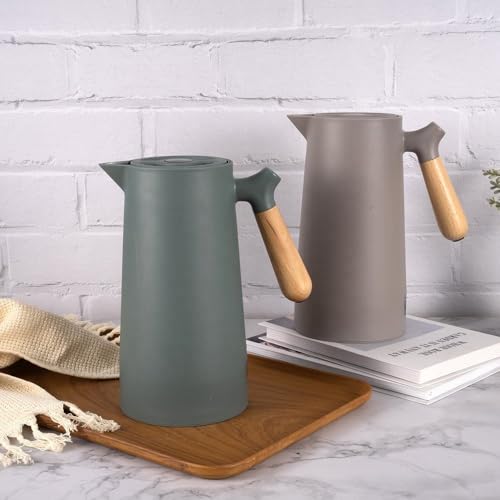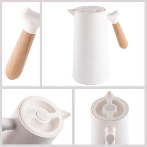 Generic - ترمس حراري سعة 1 لتر للقهوة والشاي بيد خشبية من سوكو، يحافظ على الحرارة لمدة 24 ساعة، ترمس مزدوج الجدار معزول بتفريغ الهواء / إبريق / موزع للمشروبات الساخنة والباردة مع مقبض خشبي شكل مضلع معا غطاء قاب