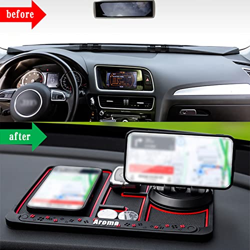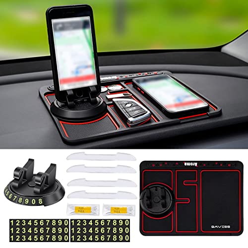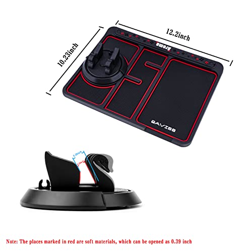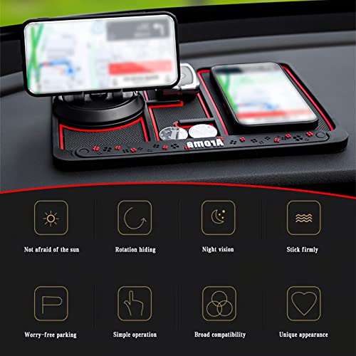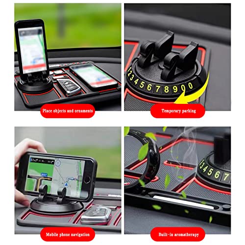 Sodcay - قاعدة بساط موبايل مضادة للانزلاق لتابلوه سيارة متعددة الوظائف 4 في 1 تعمل كحامل موبايل دوار 360° للتابلوه وبساط تخزين للسيارة وصينية إطار لجهاز ملاحة لسيارة من سيارة، أحمر، 25 × 19 سم، قطعة واحدة