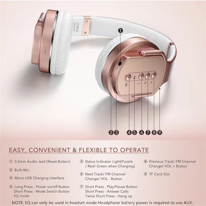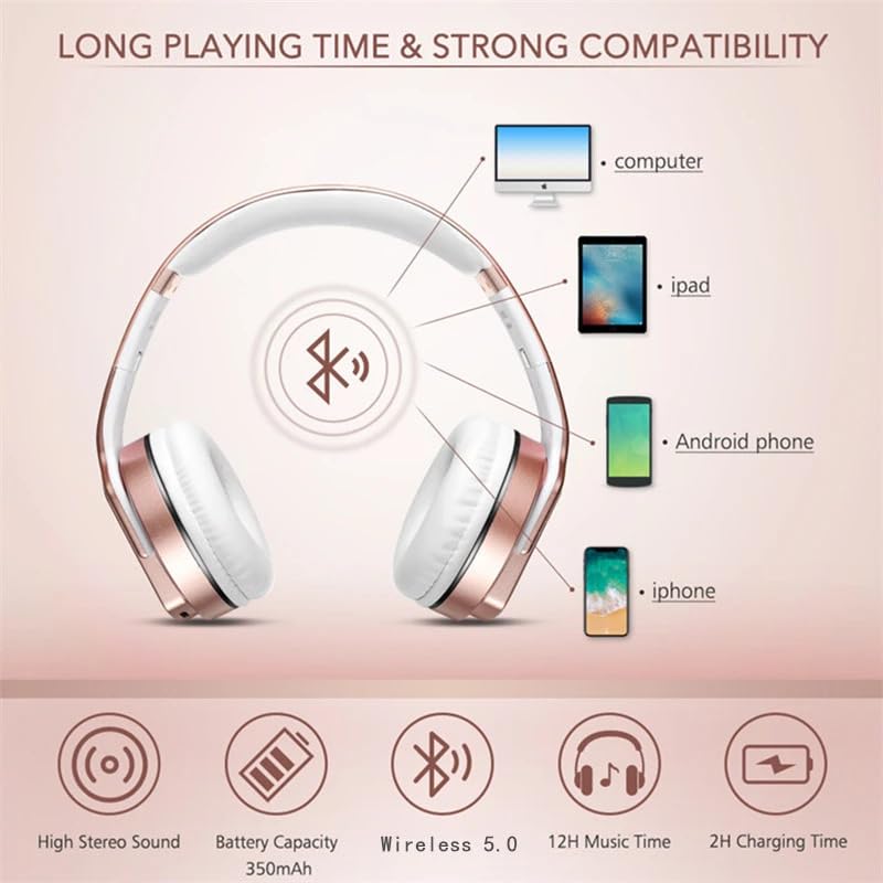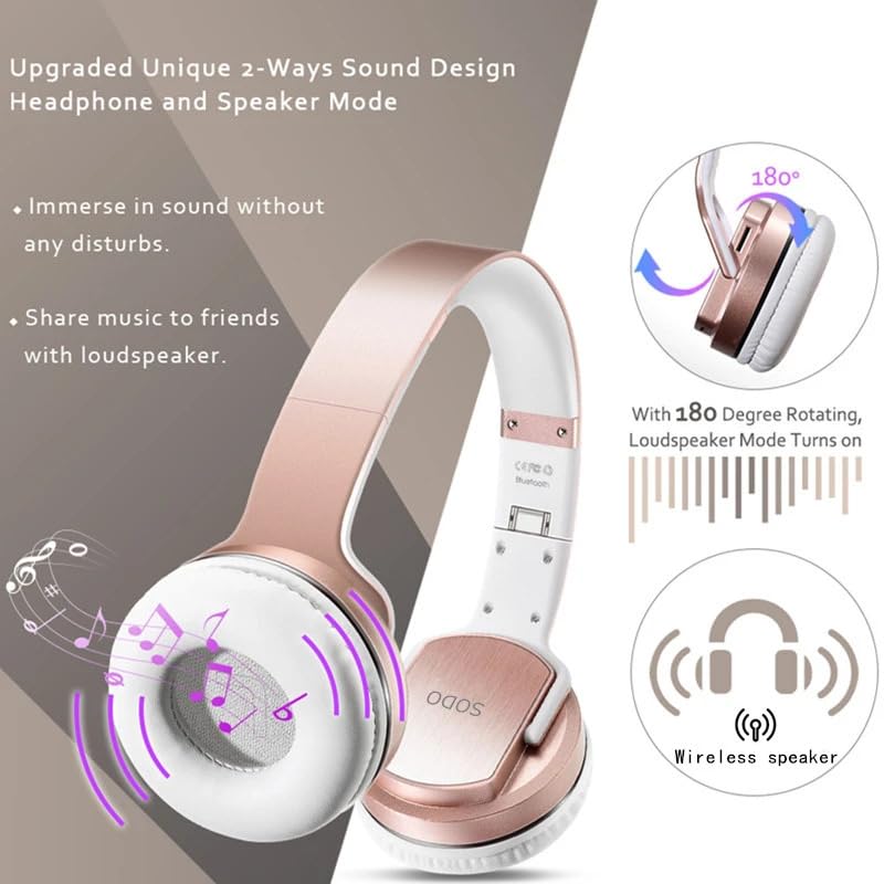 Generic - سماعة رأس 2 في 1 بلوتوث 42 مع مكبر صوت، قابلة للطي بجودة صوت ممتازة وصوت باس قوي وراديو اف ام ودعم اتصال قريب المدى ان سي ومشغل بطاقة تي ومدخل وزر تحكم مريح من سودو اتش (بينك)، داخل الأذن، زهري.