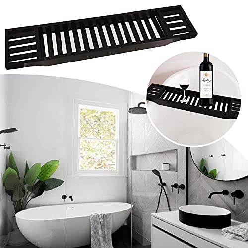 Soekodu - رف حمام خشبي من البامبو من سويكودو، يستخدم كلوح للبانيو او درج او منظم للحمام - متعدد الاغراض - اكسسوارات الحمام (اسود) - يمكن استخدامه للقراءة اثناء الاستحمام