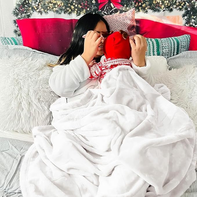 Moro Moro 3 - صوفا مقاس 220 × 240 سم – غطاء سرير مزدوج أبيض أريكة كبير الحجم فلانيلة ناعمة ودافئة مايكرو فايبر