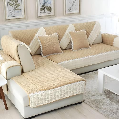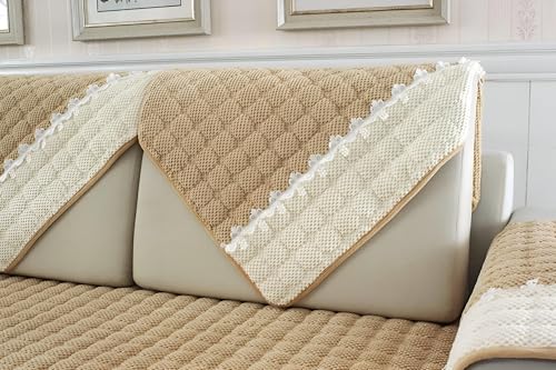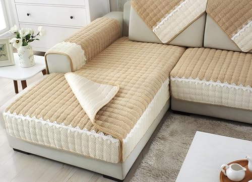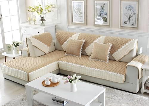 Generic - غطاء حماية للكنبة من قماش قطيفة، مضلع وناعم وبتصميم غير قابل للانزلاق، مناسب لكرسي حب وكنبة استرخاء من الجلد على شكل L مع مسند ذراع ومسند ظهر، مقاس 43×82 سم، لون بني (Khaki)