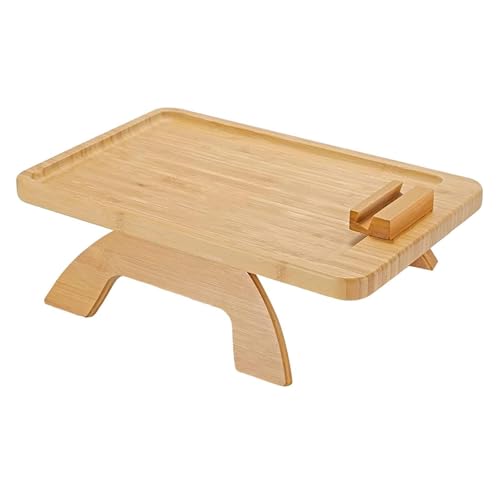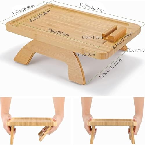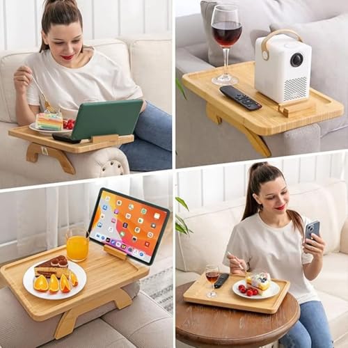 Aartner - صينية اريكة خشبية لمسند الذراع مع حامل دوار، 29 × 21 سم قابلة للطي بمشبك على رف الكنبة والوجبات الخفيفة والجوال والتحكم والاكواب، صينية ذراع الكنبة المحمولة