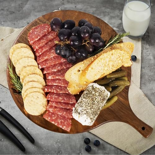 SOFE - سوفي الواح دائرية من خشب الجوز مع مقبض - لوح تقطيع البيتزا والجبن 12 انش - لوح تقديم للبسكويت والفواكه والخضروات ولوح تقطيع خشبي للمطبخ