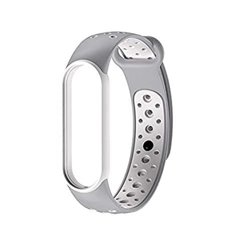 other - سوار بديل مرن بفتحات لشاومي باند Mi 5 - (رمادي - ابيض)، للجنسين.