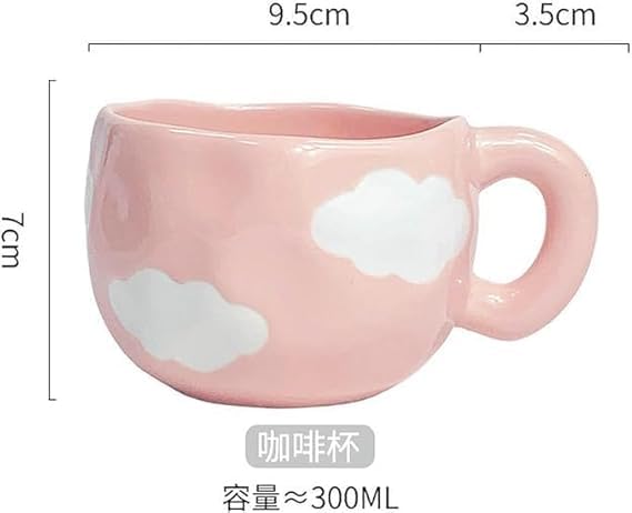 Generic - مج بورسلين بتصميم سحابي ناعم، باللون الوردي الفاتح ولمسات بيضاء على شكل غيوم، يتميّز بشكل أنيق ومريح للاستخدام اليومي ويضفي لمسة جمالية حالمة على أوقات تناول المشروبات الساخنة.