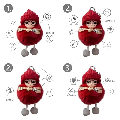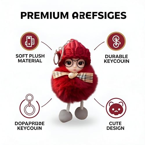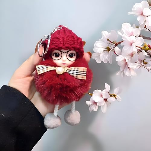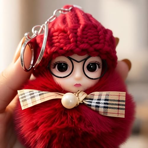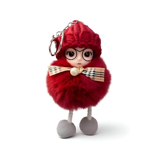 Generic - حلقة مفاتيح ناعمة على شكل لعبة عروسة - سلسلة مفاتيح رائعة محشوة بالصوف بألوان زاهية، مثالية لتعليقها في الشنط أو المحافظ أو مفاتيح السيارة، تصميم متين وخفيف الوزن