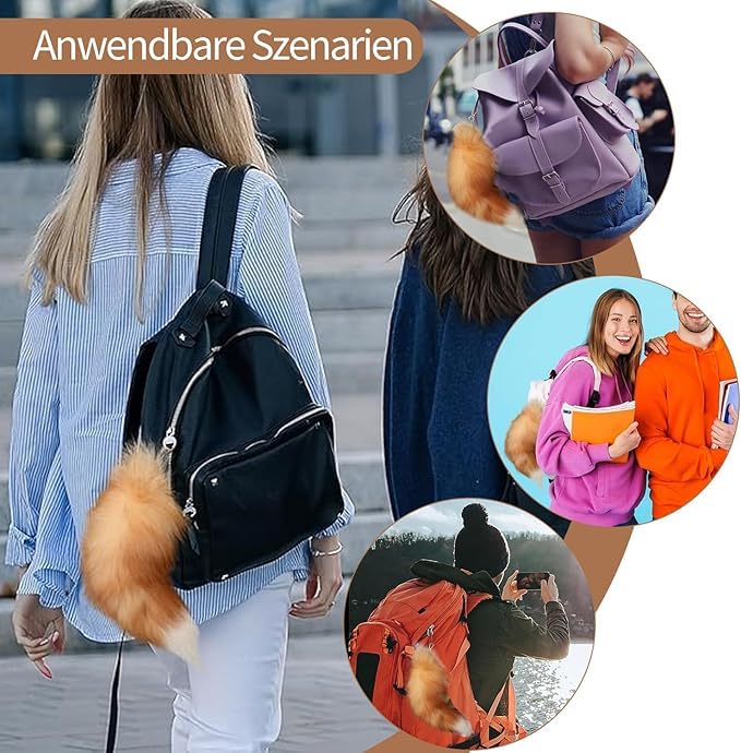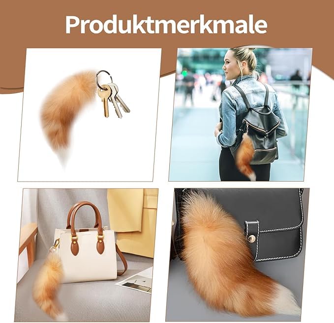 fashion mania - قلادة ناعمة منفوشة على شكل ذيل الثعلب، اكسسوارات كبيرة لحلقة المفاتيح، سلاسل مفاتيح السيارة، سلاسل مفاتيح، دلاية