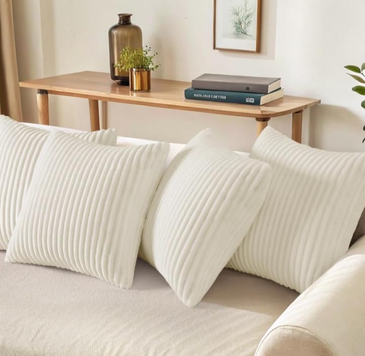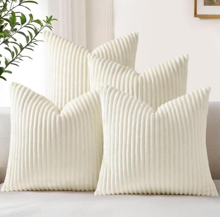 Generic - طقم غطاء وسائد فرو ناعمة، 4 قطع، أبيض كريمي، مقاس 45 × 45 سم، تصميم مخملي مضلع