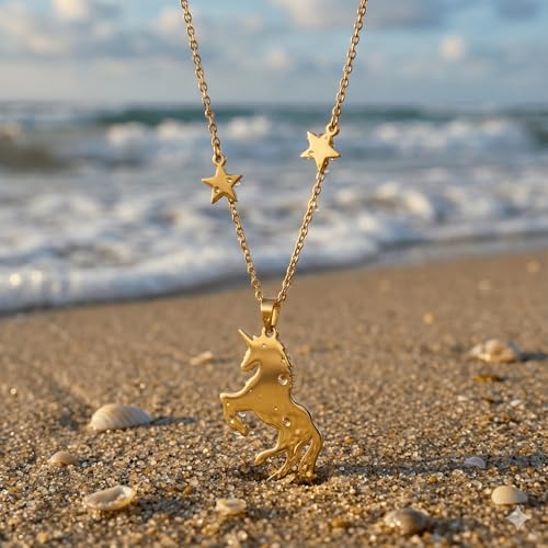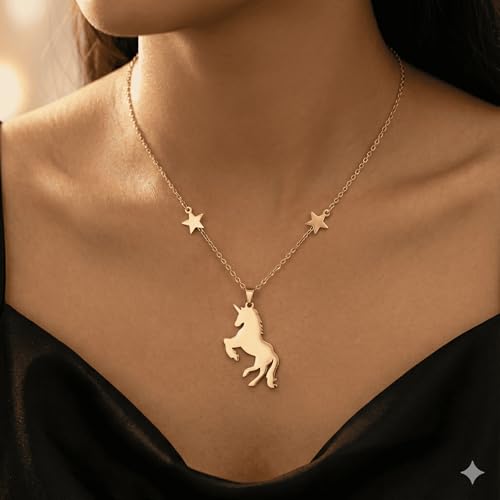 Generic - سلسلة ذهبية ناعمة بدلاية حصان جذاب | تصميم أيقوني مع نجوم متدلية | من الاستانلس ستيل المقاوم للصدأ | هدية مثالية للفتيات ومحبي الخيال والأساطير