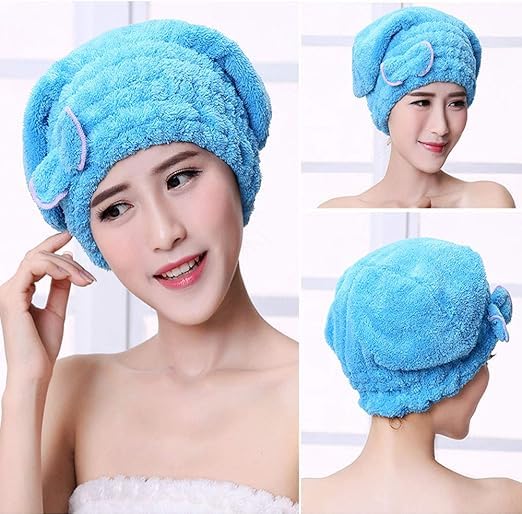 Generic - منشفة شعر ميكروفايبر ناعمة، قبعة تجفيف الشعر، أزرق فاتح، قماش فائق النعومة، للاستحمام والعناية بالشعر-قطعه واحد