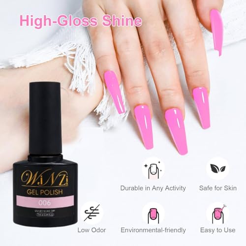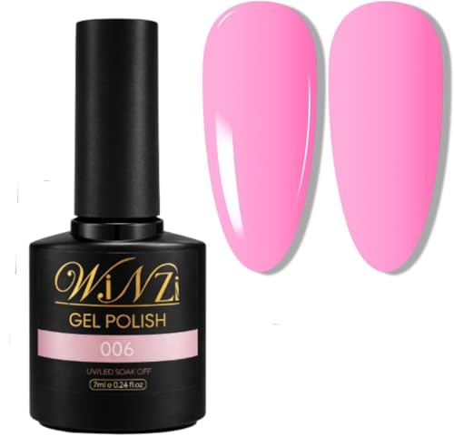 WINZI - طلاء hظافر جل ناعم وردي 7 مل، طلاء جل بضوء ليد بالأشعة فوق البنفسجية سهل الاستخدام بلمسة نهائية شديدة اللمعان، لون أنيق لصالونات التجميل والمانيكير في المنزل (006)