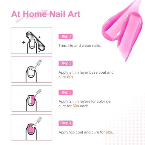 - يتطلب استخدام مصباح ليد (UV/LED) للحصول على أفضل النتائج: يعالج بأمان تحت معظم مصابيح الأظافر بالأشعة فوق البنفسجية ومصابيح الليد.