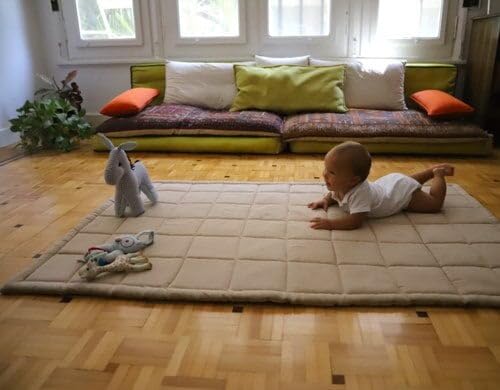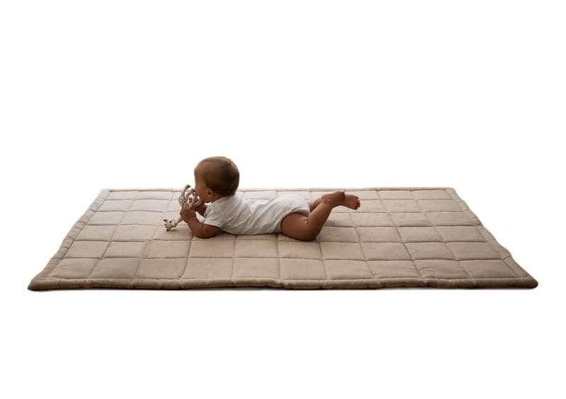 - ناعمة ومبطنة: توفر البطانة القطيفة والمخملية للبساط سطحًا مريحًا وداعمًا لحماية طفلك من الصدمات والسقوط أثناء اللعب.